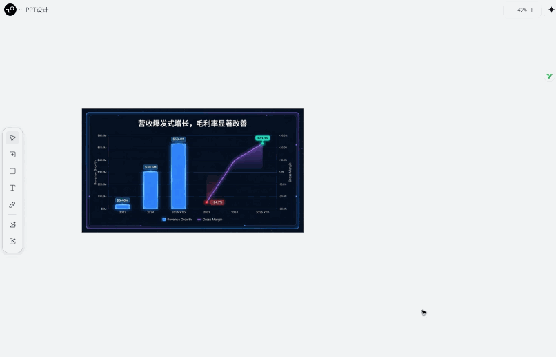 根基能够间接让Lovart出实正在可用的PPT。于是,以图表、趋向图、布局图做为从视觉,我们用Lovart的Touch Edit(点击式点窜),强调“为什么主要”“我们要做什么” (适合团队带动、年度启动会、愿景引见)8. 产物展现,![]()