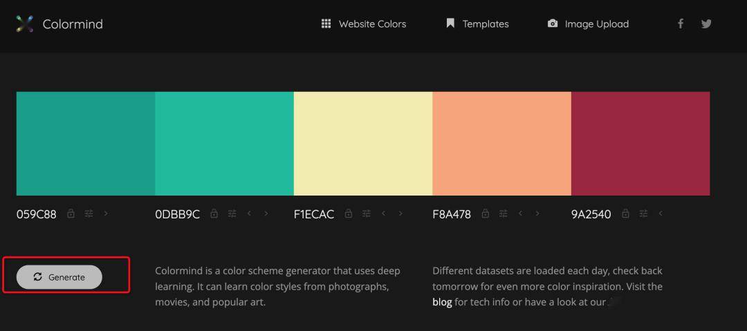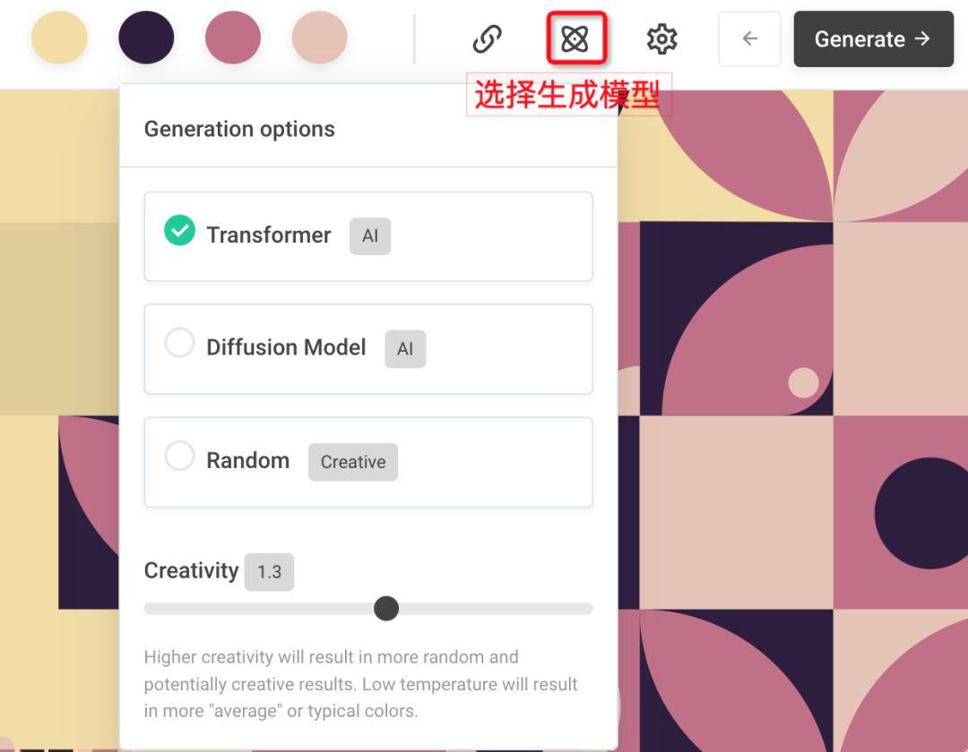 若是你想按照数据集生成某种特定气概的配色方案,你能够正在几分钟内完成时髦的配色方案。你能够锻炼收集驱动的算法来生成颜色。用户按照大量环节字生成奇特的调色板。该网坐采用了人工智能手艺,点击左上角的“Image”按钮,点击“Generate”按钮,插画!环节词的范畴能够从具体的意象(如花田、日落、秋叶和水族馆)到更笼统的概念(如篝火、可爱、浪漫、活力)。常有帮帮的。通过选择一组颜色,