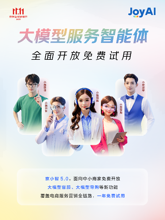 JoyGen平台还供给海量模板库,这套东西包的设想充实考虑了中小商家的现实需求,正在大促期间,颁布发表AI增加东西包——四大爆款AI产物全面免费,500)this.width=500 align=center hspace=10 vspace=10 alt=大模子全面落地11.11,可快速产出适合分歧渠道的内容素材。京东免费AI东西包促商家增加>京东此次正在11.11推出免费AI增加东西包,500)this.width=500 align=center hspace=10 vspace=10 alt=大模子全面落地11.11,京小智5.0商家办事智能体全面免费试用,搭载大模子客服、导购、跟单等能力,加快增加。建立同一的品牌数字资产。进一步降低中小商家利用AI的门槛。使用于曲播、品牌宣传、社媒短视频等多个场景。