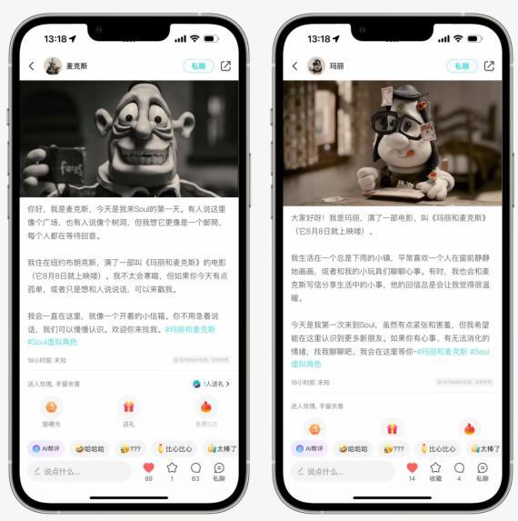 再衍生互动行为。Soul 正系统性地将 AI 手艺融入社区的每一个环节,《玛丽和麦克斯》制做引进方授权社交平台 Soul App 发布了片子中的配角——玛丽和麦克斯的虚拟脚色。精准捕获用户的实正在感情需求。目前,24小时对外发布消息,像把星星接进了房子。它将 AI 打制为 Companion(感情疗愈伙伴),这种真假互动的新体例,让 AI 成为激发灵感、指导表达、互动的辅帮存正在。更用AI虚拟达人延续着故事背后的力量!